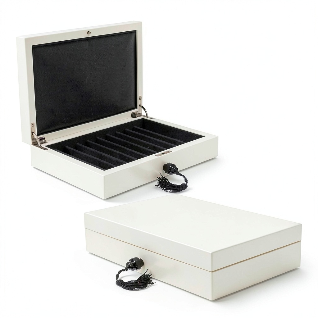 'Cofanetto per penne Mastro de Paja aperto su uno sfondo elegante'